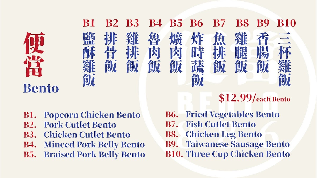 The culinary offerings at Bento 886 are a delightful array of traditional Taiwanese bento boxes. Imagine sinking your teeth into the perfectly seasoned Popcorn Chicken Bento, which comes beautifully presented with crispy morsels of fried chicken that are marinated in a rich blend of spices, or the mouth-watering Three Cup Chicken Bento, where tender chicken thighs bathe in a savory sauce made of soy sauce, sesame oil, and an aromatic mix of basil and garlic. Each bento is packed with generous portions, making it not only delicious but also a hearty dining experience.